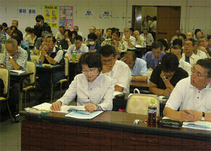 記念講演として京都大学の岡田知弘教授(自治体問題研究所所長)が「『地域主権改革』で私たちの暮らしや医療・福祉はどうなるのか」と題し講演しました。岡田教授は今の情勢下で「国や地方自治体が誰のためにあるべきかが鋭く問われる時代」とし、憲法25条や住民のくらしの組織であり、「住民の福祉の増進を図ること」(地方自治法)を基本目的とした地方自治体のあり方が「地域主権改革」によってどうなるかが問題であると強調しました。また、現政府がすすめようとしている「道州制」に対し、「地方交付税制度を廃止し、地方消費税の引き上げ、住民の『自立』『自助』の提唱」「地方自治体の役割を果たせないような巨大地方団体となり住民自治の更なる破壊がすすむ」などと警鐘しました。